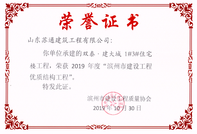 山東蘇通建筑工程有限公司,創(chuàng)建于2009年8月。目前擁有房屋建筑工程施工總承包壹級、市政公用工程施工總承包叁級、水利水電工程施工總承包叁級資質(zhì),同時還具有建筑裝修裝飾工程專業(yè)承包貳級、消防設(shè)施工程專業(yè)承包貳級、鋼結(jié)構(gòu)工程專業(yè)承包叁級、建筑機電安裝工程專業(yè)承包叁級等專業(yè)承包資質(zhì)。 公司總部坐落于山東省濱州市濱城區(qū)黃河十二路877號,現(xiàn)有辦公面積約2000平方米,機構(gòu)設(shè)黨支部工會辦公室、總經(jīng)理辦公室、綜合辦公室、工程管理部、經(jīng)營預(yù)算部、資產(chǎn)財務(wù)部、材料設(shè)備部、運行管理部、法律事務(wù)部等多個職能部門。公司管理體系已經(jīng)通過了GB/T 19001及GB/T 50430質(zhì)量管理體系、GB/T 24001環(huán)境管理體系(EMS)、GB/T 28001職業(yè)健康安全管理體系(OHSMS)等體系的認(rèn)證。 公司承建完工了濱州市建大教師之家、建大清怡苑、香格里拉水岸綠城住宅小區(qū)、雙泰建大城、曲阜崇德公館住宅小區(qū)、北海新區(qū)御景藍(lán)灣住宅小區(qū)、沾化德榮國際華城住宅小區(qū)、惠民橄欖郡住宅小區(qū)等工程項目,目前在建工程項目有:濱州市頤高國際電子商務(wù)產(chǎn)業(yè)園住宅小區(qū)項目、濱州市東盛國際項目、高新區(qū)建大中央華府住宅小區(qū)項目、濱州市融匯新里程住宅小區(qū)項目、濱州市建大秦皇壹號住宅小區(qū)項目、濱州市森林花...